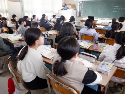 写真は1組と2組の授業風景です。