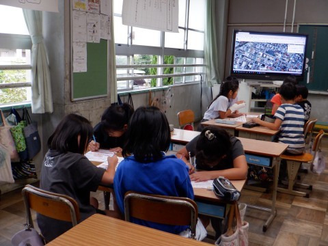 4年3組の子どもたちが、社会科の学習で、校内に設置されている災害備蓄倉庫の中をのぞいていました。