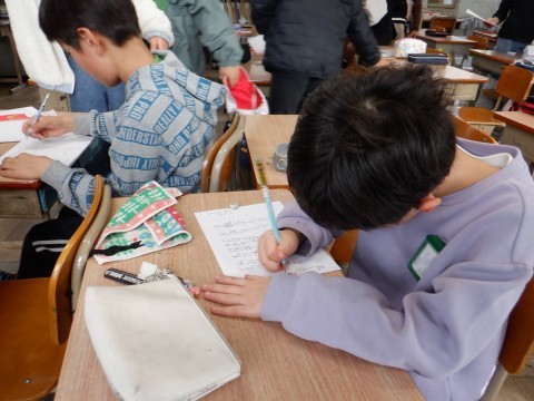 国語科の学習でつかった「ハートカード」に今日の気づきを書き出していました。