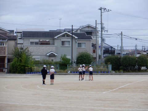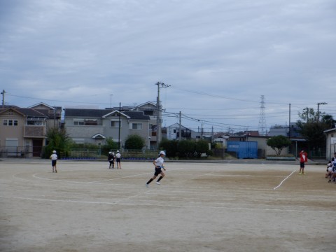 ボールのパスの練習をしてから、トスバッティングのゲームを楽しんでいました。