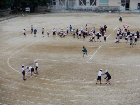 5・6校時、5年生が運動場でクラスマッチを楽しんでいました。