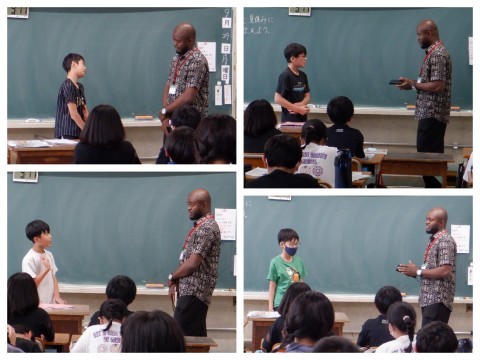 夏休みの楽しかった思い出を英語でスピーチし、NSの先生からの質問にも英語でこたえていました。