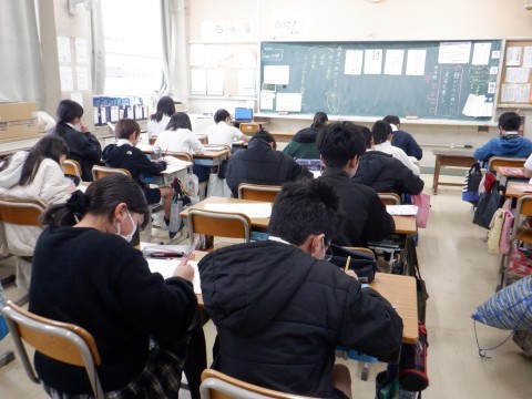6年1組の国語では、静かに丁寧に漢字学習に取り組んでいました。