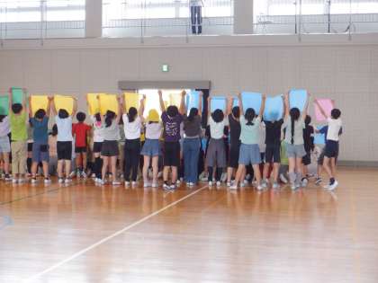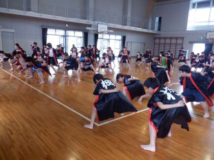 2時間目、1年生と2年生は、体育館で合同練習をし、お互いのダンスを披露しあいました。