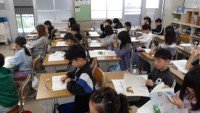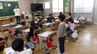新しく勉強する物語文をみんなで見ています。本読みの声をしっかり集中して聞いていま...