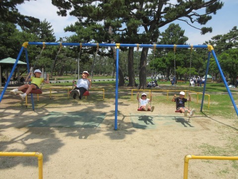 路面電車に乗って浜寺公園に着いたら、待ちに待ったお弁当タイムです。みんな嬉しそうに食べていました。