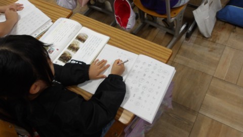 お話を学習しています。みんなしっかりと話を聞きながら,