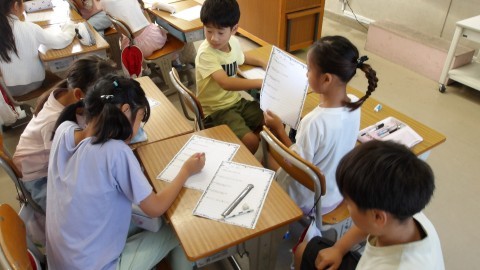明日の校区たんけんに向けて,最後の打ち合わせをしています。
