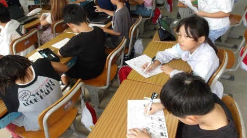 体育大会の絵を描いています。玉入れやリレーなど,みんなの思う