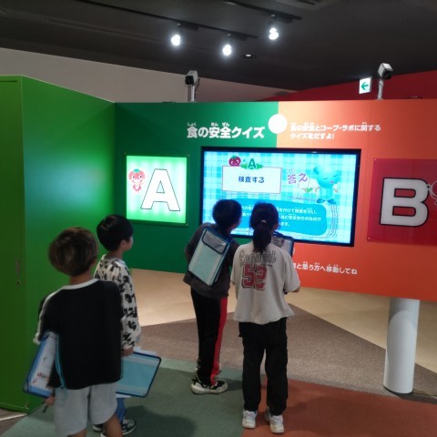 コープラボのミュージアムを見学、体験しています。いろいろな体験や展示があり、みんな楽しく学んでいます。