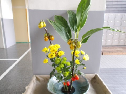 地域ボランティアの野田さんが,玄関にめずらしいお花を生けてくださいました。いつもありがとうございます。