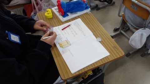 立体の体積の学習を始めています。面積の考えと