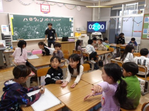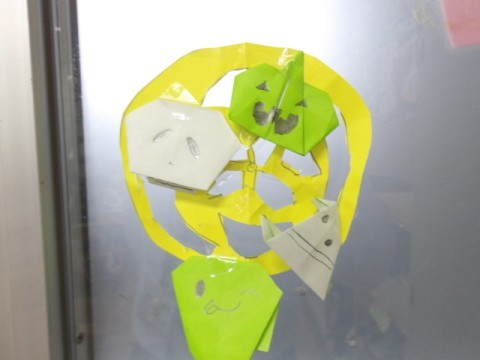 今日はハロウィン。1年生はパーティーを開催して,ゲームを楽しんでいました。かわいいおばけがいっぱい飾られていましたね!