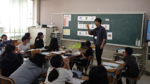 人の特徴や性格などを表す英語を学習しています。外国語の先生は