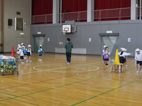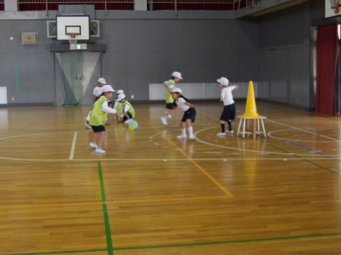 サークル的当てゲームをしました。攻守ともに頑張っていましたね。