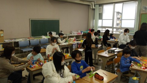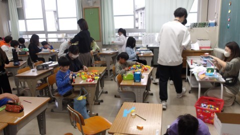 つくったり,飾りつけを考えたり,みんなで協力しています。