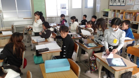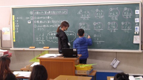 小数のひき算のひっ算について学習しています。小数点の位置に注目して,