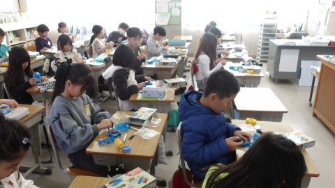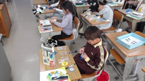 磁石の学習を始めていきます。学習キットが配付され,子どもたちは