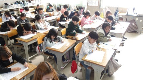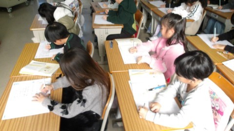 一生懸命にうつしています。正しい姿勢で集中できていて素晴らしいです。