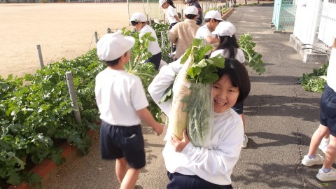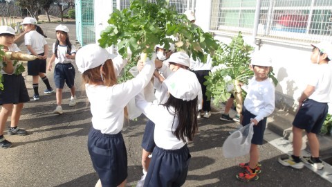 大根ぬきをしました。みんなで協力して,せ~ので大きくて