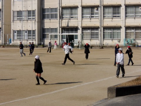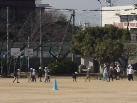 1~6年生の縦割り活動では,だるまさんが転んだや鬼ごっこ,ドッジボールをみんなが楽しめるように工夫して遊びました。