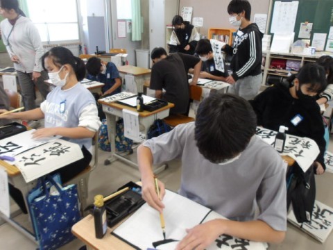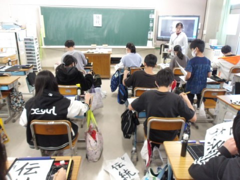 書写では「伝統」の文字を書きました。力強く丁寧に書いていました。