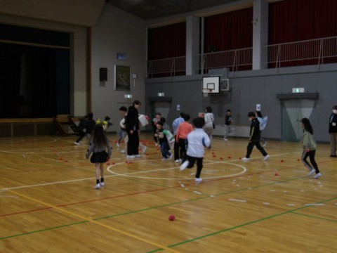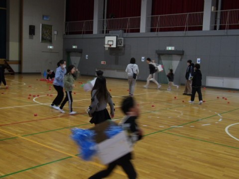 あすなろ学級では,体育館に全員集まってお楽しみ会をしました。追っかけ玉入れをしてみんなで楽しむことができました。