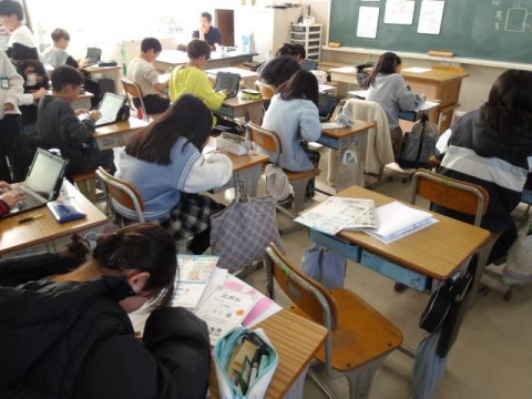 学級会では,午後からの大掃除に向けて,みんなの心構えを確認しました。その後,年賀状を書きました。