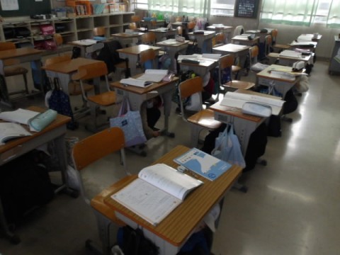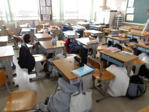 1月20日,津波による避難訓練を実施しました。大きな地震が発生し,各学年の児童が自分の身を守るために素早く行動に移すことができました。