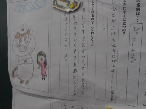生活科では,「こんなロボットがあったらいいな」と思うものを一人ひとりが,いろいろなことを創造して書いています。