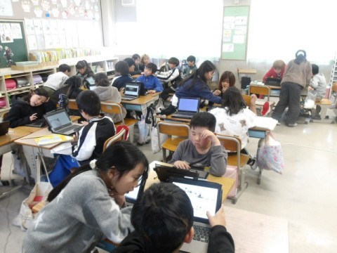 これまでの総合学習の活動をプレゼンソフトを使ってまとめています。これからは,発表の練習に入っていきますね。
