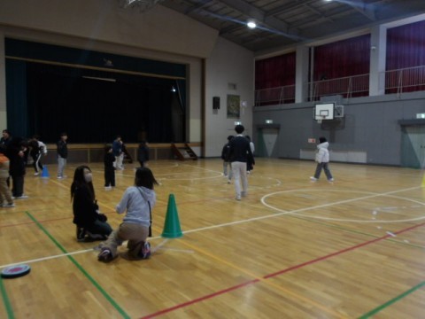 今日は節分です。あすなろ学級児童全員が集まって,節分集会をしました。体育館に鬼が侵入してきたので,新聞紙を丸めた球をみんなで協力して,鬼に投げ退治することができました。みんなの心の鬼も一緒に退治できたのではないでしょうか。その後,ドッジビーで楽しみました。