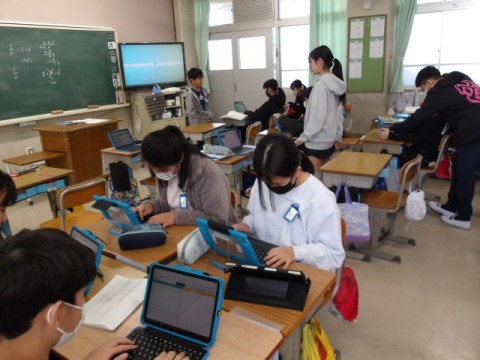 新しく導入されたipadを使って,算数の問題を解いています。