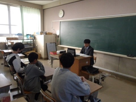 全校朝礼では,校長先生から,冬季オリンピックについてのお話がありました。「日本代表という相当なプレッシャーの中,どんなパフォーマンスが出せるのか,応援しよう」と伝えられました。