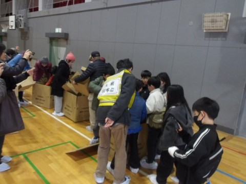 体育館では,段ボールベッドを実際に組み立てて,簡易テントで覆いをしてプライベートが守られることを確認できました。