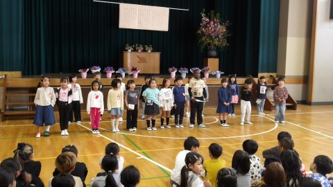 2年生からアサガオの種をもらい,在校生に向けてのあいさつもしっかりと