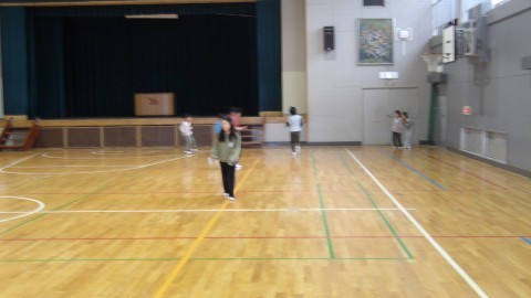 体育館に集まってみんなで運動をしました。