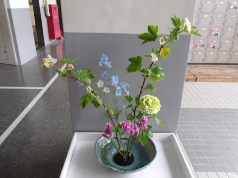 今年度も環境ボランティアの野田さんが,玄関にお花を生けてくださっています。いつもありがとうございます。