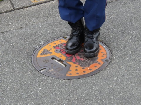 避難訓練の後,消防車見学をしました。校門出てすぐの道路に消火栓があることを教えてもらいました。消防隊員のみなさん,いろいろと教えていただきありがとうございました。