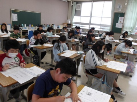 5年生は学力テストとして,「すくすくウォッチ」を実施しました。教科は国語と算数,理科,わくわく問題でした。