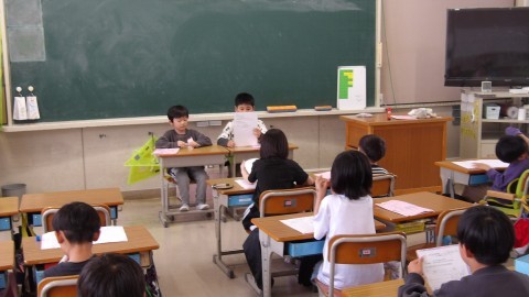 学級会をおこなっています。司会も子どもたちが担当し,