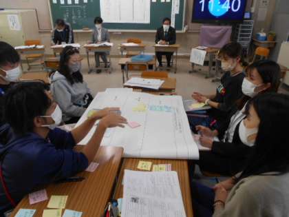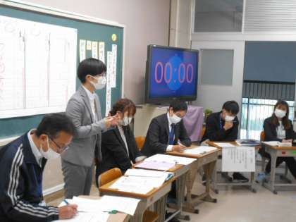 3年研究授業を終えた後,討議会を行いました。授業で良かったところや課題について各グループで話し合い,みんなで共通理解することができました。