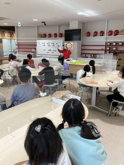 豆腐の作り方を教えてもらっています。国語で勉強したばかりなのでよく分かりますね。
