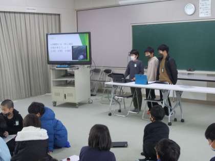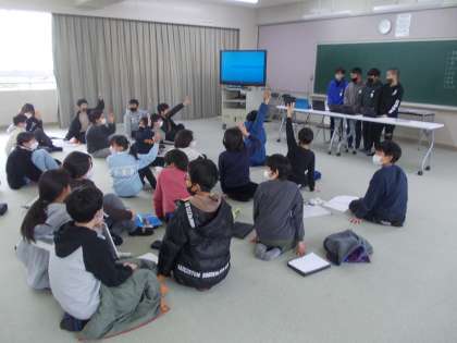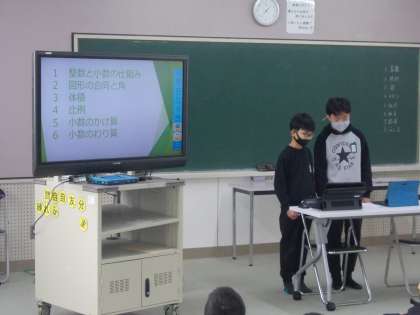 5年生の学習参観は、この1年間に学習したことの発表会です。各グループに分かれてパワーポイントにまとめたり、クイズを出したり、みんなしっかり大きな声で発表できていました。