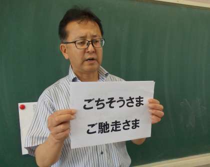 それにちなんで、今日は「ごちそうさま」という言葉についてお話します。ごちそうさまの「ご」や「さま」は丁寧に言う時に頭やお尻に付ける言葉です。真ん中の「ちそう」というのは、漢字で書くと「馳走」で「馬」や「走」という漢字が入っていて「走り回る」という意味です。