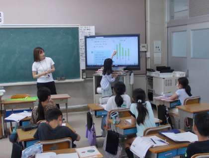 ぼうグラフについての学習です。たくさん手が挙がって、とても意欲的に学習に取り組んでいました。