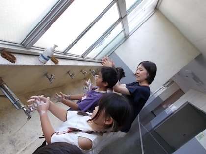 手洗いでは、ビデオを見た後に、実際に手洗いをしました。「保育園でもしたよね。」と思い出しながら丁寧に手洗いをすることができました。