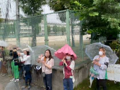 雨の中たくさんの保護者や先生が、お見送りをしてくれました。ありがとうございます。