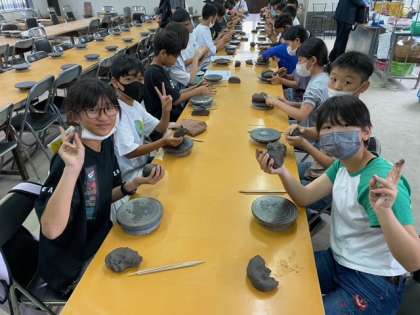 たぬき村に到着しました。集合写真を撮ってから、陶芸体験が始まりました。