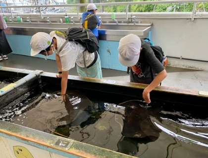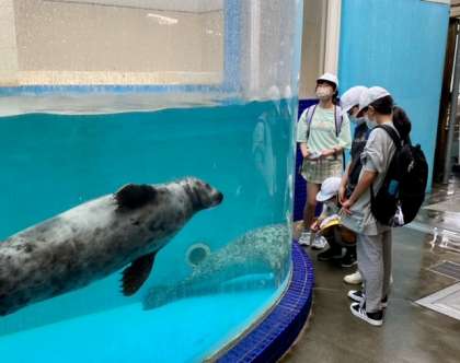 グループで館内を見学しています。